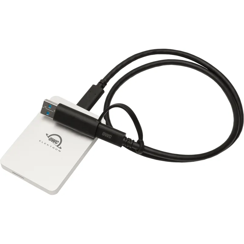2.0TB OWC Envoy Pro Elektron USB-C Portable NVMe SSD. The fastest, toughest mini-sized USB-C bus-powered SSD in the universe. It's dust/waterproof for transferring gigabytes of data in seconds anywhere with Macs and PCs.