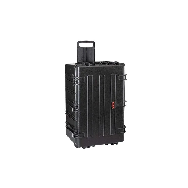 The Explorer Cases 7641.B.15U is a fully waterproof trolley case with an aluminum Rack Frame for 19" equipment. 19 Inch is a standardized width dimension for certain electronic equipment (see heading 'Application'). You can safely mount these devices in the rack using the 'slots' on both sides of the rack. The interior dimensions of the case are 76.5 x 48.5 x 41.5 cm; the exterior dimensions are 86 x 56 x 46 cm.