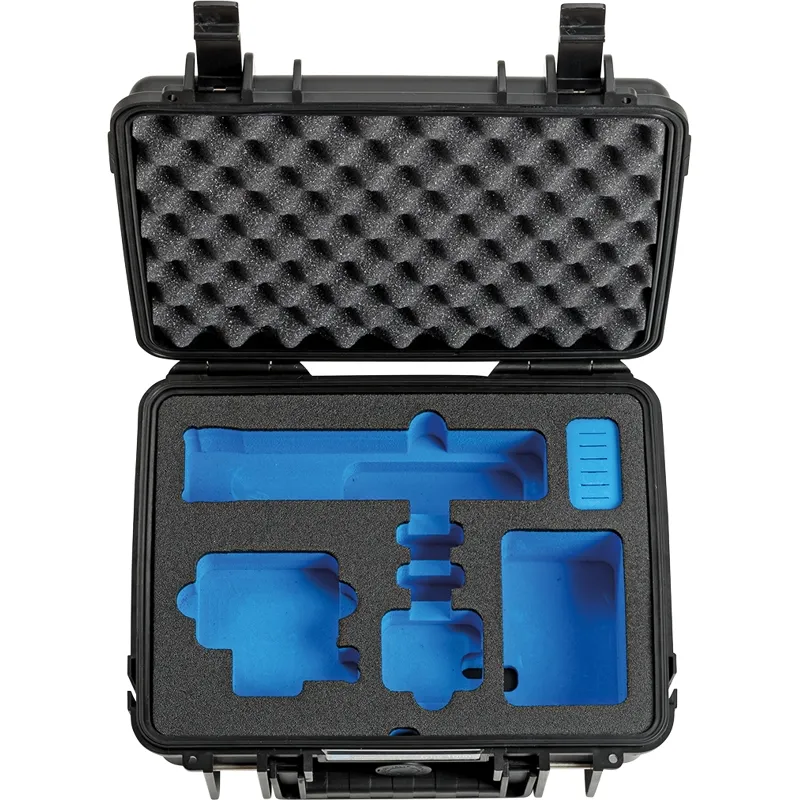 THE case for your GoPro Hero 9 Actioncam + accessories! Thanks to its custom foam insert it provides sufficient space for your GoPro Hero 9 and the accessories: the dual battery charger, up to 3 batteries, floating hand grip, up to 7 microSD memory cards, mounting brackets and cables. The spares compartment (92 x 62 x 57 mm) offers space for additional accessories and it is possible to charge two batteries directly in the case. An additional spares compartment (218 x 139 x 59 mm) in the second layer offers space for additional accessories, e.g. holders or tripod