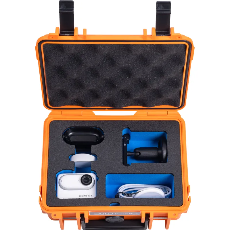 Чехол outdoor.case 500 с пенным вкладышем вмещает вашу камеру Insta360 GO3 или GO3S и аксессуары, обеспечива оптимальную защиту во врем транспортировки.