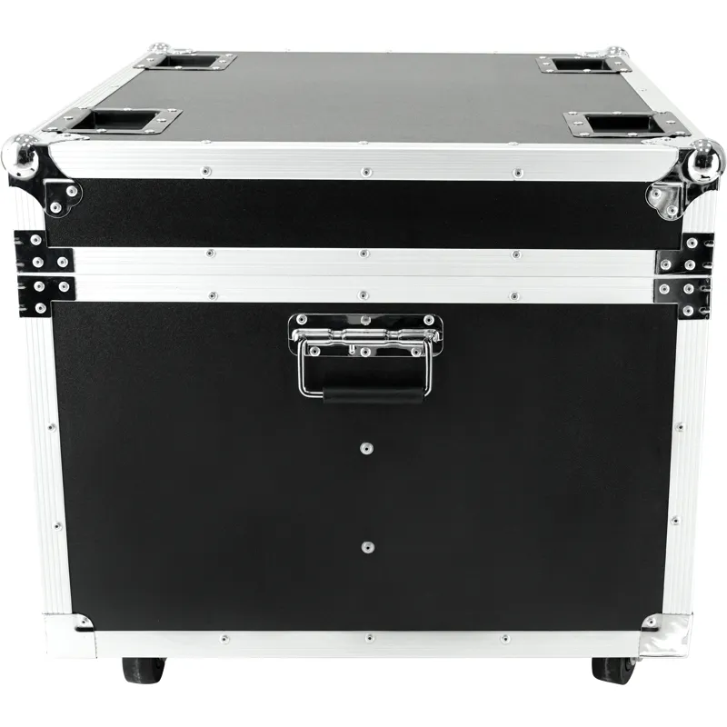 The Nanlux Flight Case CC-EV1200-FL-YK-FT is an efficient-sized heavy-duty hard case made of pressure-cast aluminum alloy, durable and impact-resistant. It provides space for an Evoke 1200 series lamp, an FL-35YK fresnel, a power supply, a power cable, yoke, and a 45° reflector. It includes 4 omnidirectional wheels and two side handles for movement and lifting. Plus, embedded wheels on the top case for stacking multiple boxes for storage or transport.