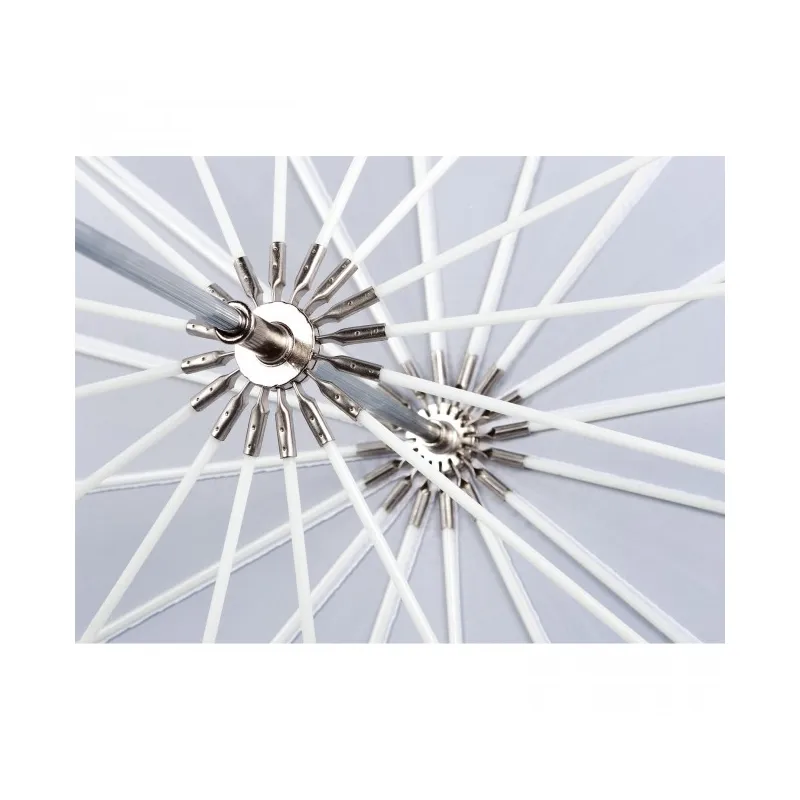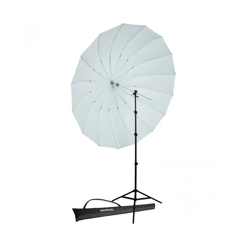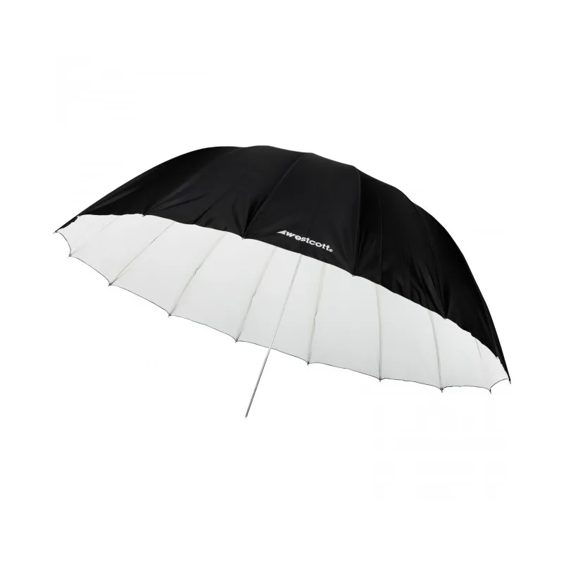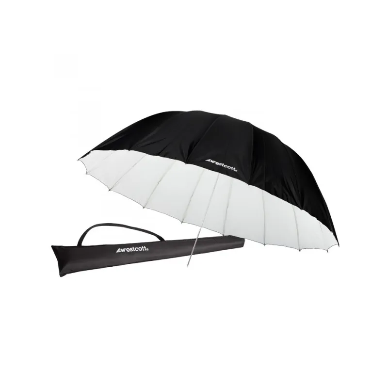 The Westcott Umbrella 4634 has a size of 213cm measured across the bow of the umbrella and is suitable for use with any studio flash kit. The umbrella has a diameter of 180cm. When using an umbrella the light gets a little harder than when using a softbox, but the light is softer than when pointing the torch directly at the subject. An umbrella is especially ideal to prevent hard shadow lines, in situations where multiple light sources are present and you use one or more umbrellas as fill-in flash.