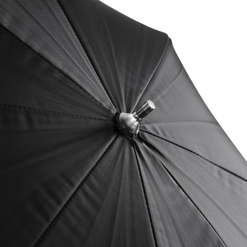 The workmanship of the umbrella is extremely high quality and it impresses with its classy look. Both the tip and the frame are made from metal which ensures higher stability and a longer lifetime. The metal shaft end is reinforced so it can be inserted into the reflector holder on the flash device more easily.