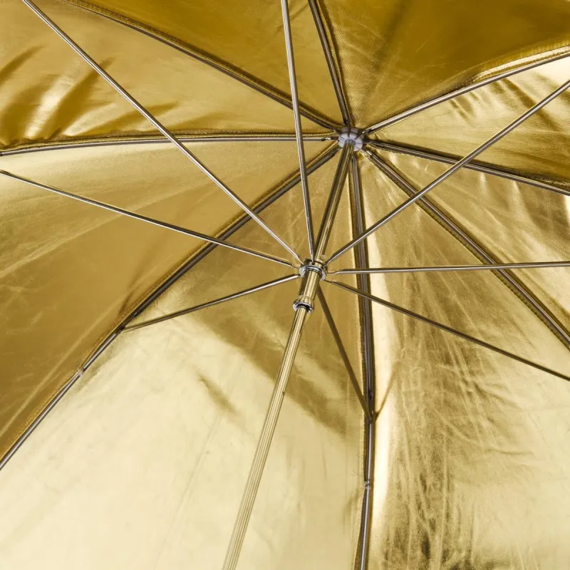 The golden reflex surface creates a warm light characteristic, which is why the reflex umbrella is particularly popular for portrait photography. You will also appreciate it as a high light in the evening sun on location.