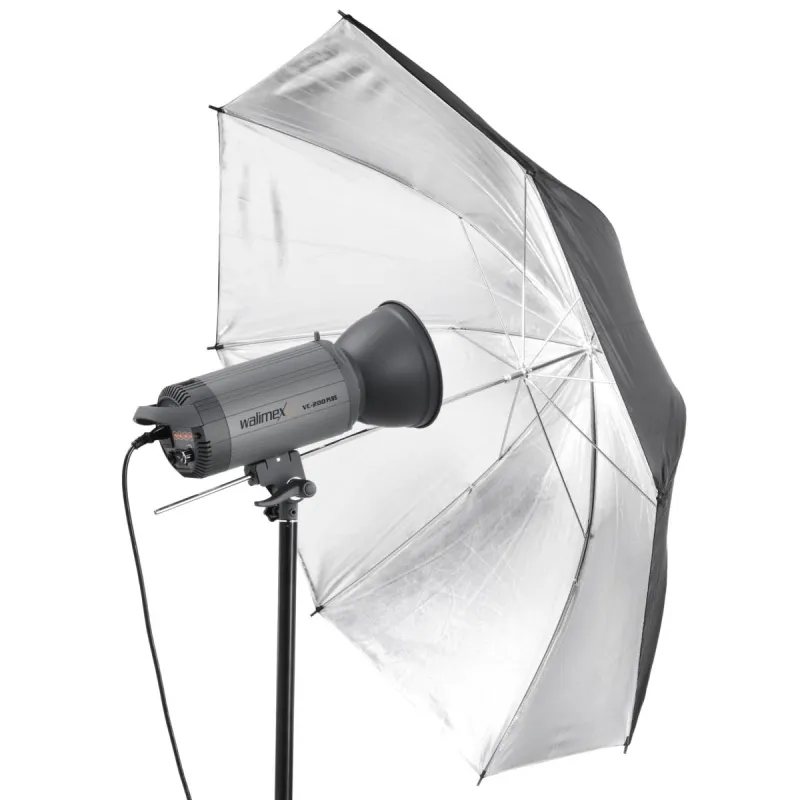 The reflex umbrella by walimex pro in black / silver is double-layered which makes it particularly efficient. It has an even better reflection capacity and the light efficiency is better while the loss of light is minimized.