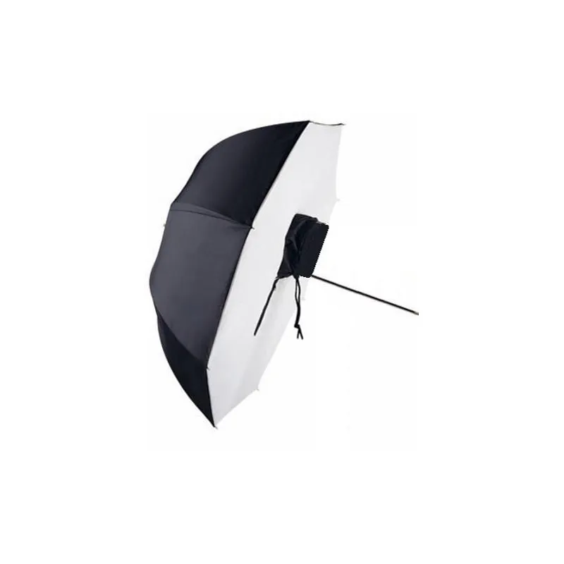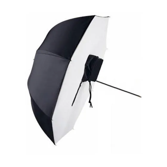 Зонт с софтбоксом (brolley) можно легко взять с собой на съемку, и он является недорогой альтернативой софтбоксу. Софтбокс сложнее взять с собой на съемку и легче повредить. Однако зонт-софтбокс быстро раскладывается, менее уязвим и подходит практически для любой вспышки. Этот зонт-софтбокс устанавливается в крепление зонта на вспышке и имеет черный цвет снаружи и рассеивающий белый цвет (прозрачный) внутри. Подходит для непрямого/отражающего света.