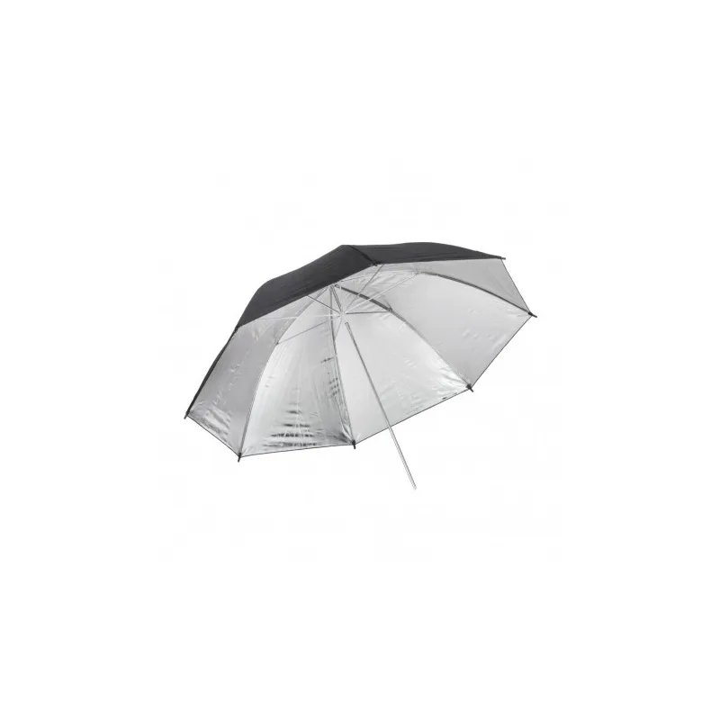 Этот зонт имеет серебристую отражающую поверхность. В отличие от белого зонта, серебряный дает более контрастный свет. Этот зонт легок, быстро устанавливается и удобен для переноски. Он идеально подходит для фотографов, специализирующихся на съемке на открытом воздухе, которым нужен модификатор света, занимающий мало места в инвентаре. Он также будет использоваться в небольших любительских студиях.